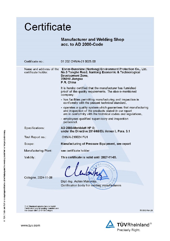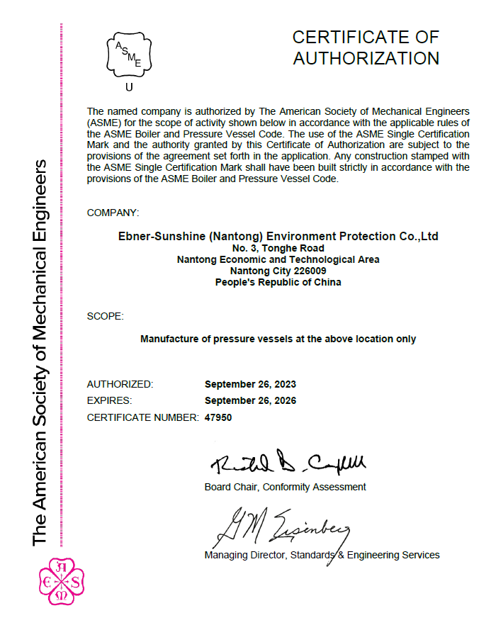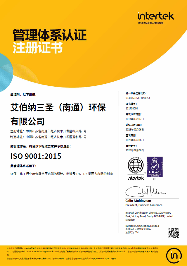 艾伯納三圣(南通)環(huán)保有限公司,成立于2011年,由享有“歐洲蒸發(fā)結晶之父”美譽(yù)的德國百年企業(yè)艾伯納(EBNER)公司和三圣石墨科技強強聯(lián)合。公司致力于為化纖、航空、化工、醫藥、食品等諸多行業(yè)提供各種非標及壓力容器、蒸發(fā)結晶裝置、自動(dòng)化過(guò)濾/增稠/洗滌/干燥裝置、余熱回收裝置、金屬及鹽回收、廢水零排放等產(chǎn)品和成套環(huán)保節能技術(shù)裝備。我們擁有:◆ ASME認證◆ 壓力容器制造許可證◆ EN ISO3...